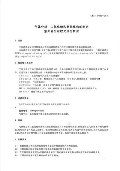GB∕T 37186-2018 氣體分析二氧化硫和氮氧化物的測定紫外差分
